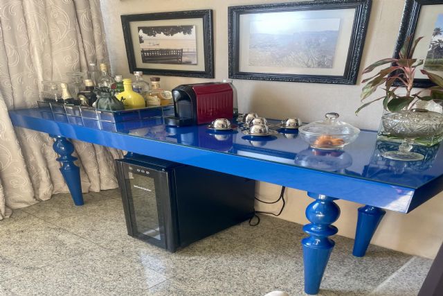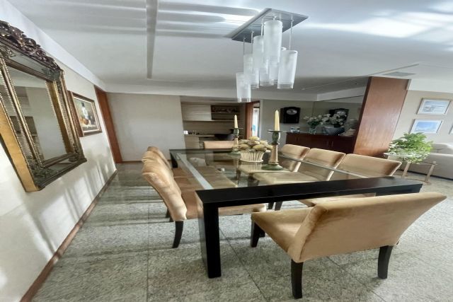 À venda, por motivo de reforma, sala de jantar com cadeiras, mesa com tampo de granito e aparador.